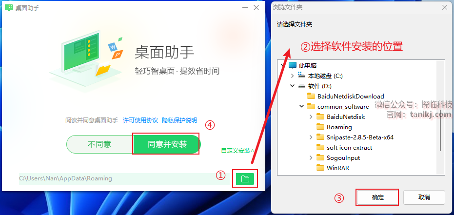 更改软件默认的安装位置,如不需更改,直接点击【同意并安装】即可。