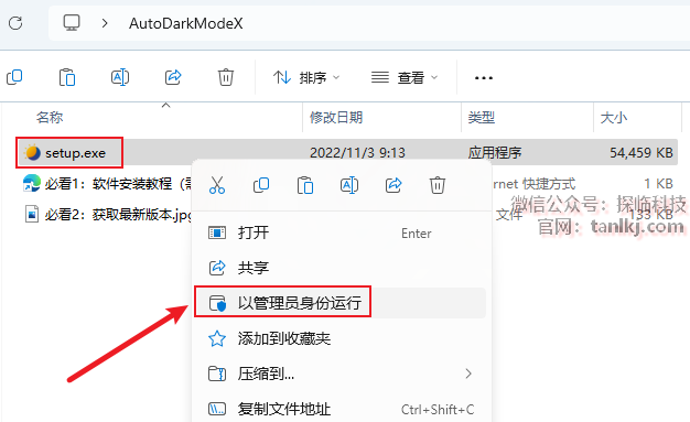 打开解压后的文件夹,右键程序【setup】,点击【以管理员身份运行】。