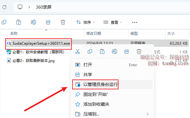 打开解压后的文件夹,右键程序【SudaCaplayerSetup…】,点击【以管理员身份运行】。