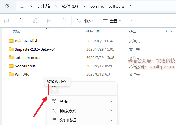 打开软件需要安装的位置,粘贴刚刚复制的文件。