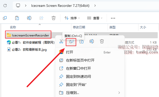 打开解压后的文件夹,复制文件【IcecreamScreenRecorder】。