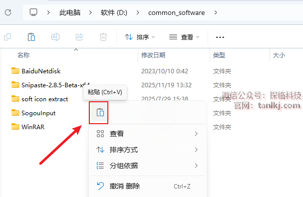 打开软件需要安装的位置,粘贴刚刚复制的文件。