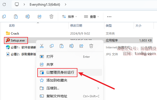 打开解压后的文件夹,右键程序【Setup】,点击【以管理员身份运行】。