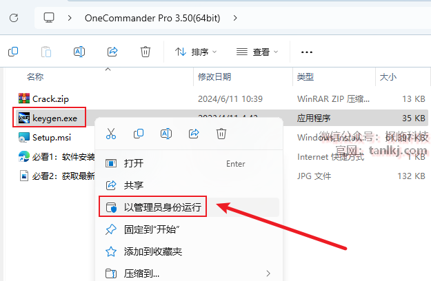 右键解压出来的文件【keygen】,点击【以管理员身份运行】。