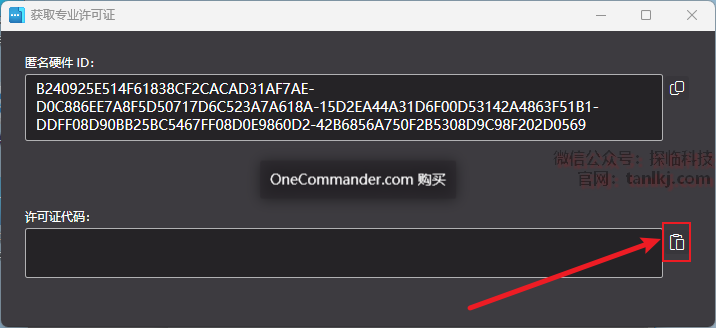 点击许可证代码右边的【粘贴】按钮。