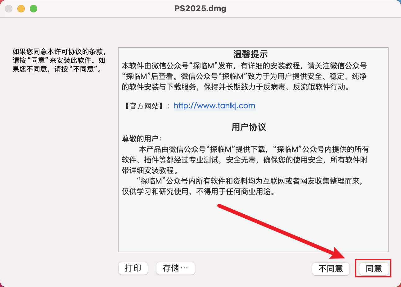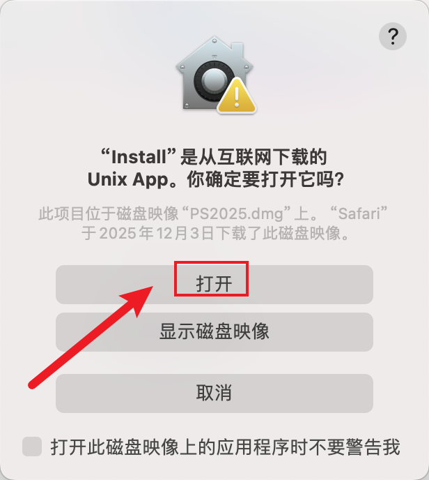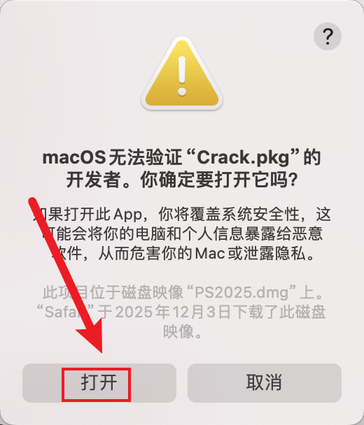 双击打开下载的安装包【PS2025.dmg】。