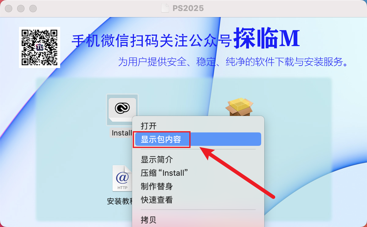 右键图标【Install】,点击【显示包内容】。