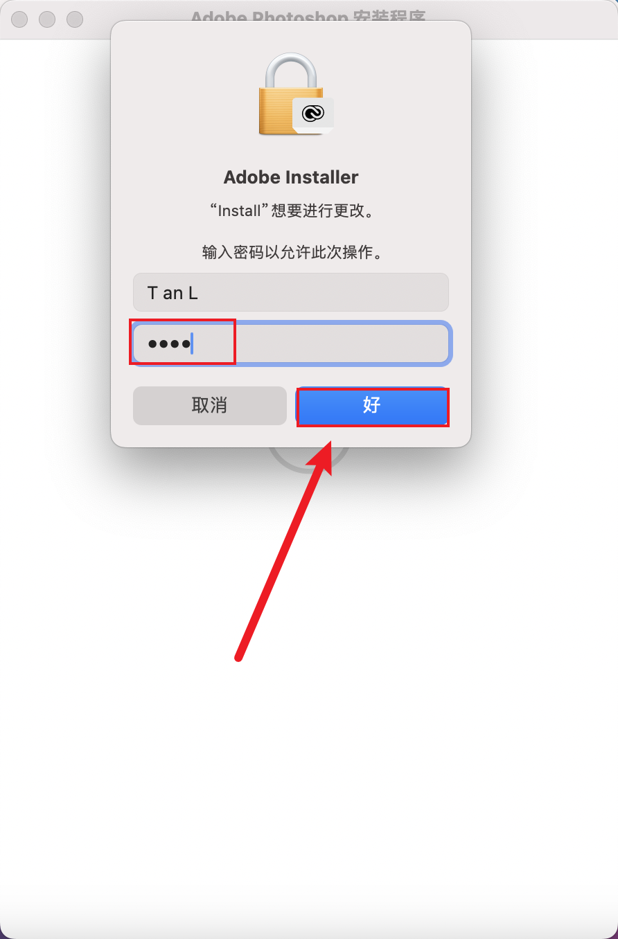 输入开机密码后,点击【好】。