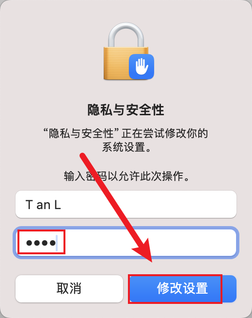 输入开机密码后,点击【修改设置】。