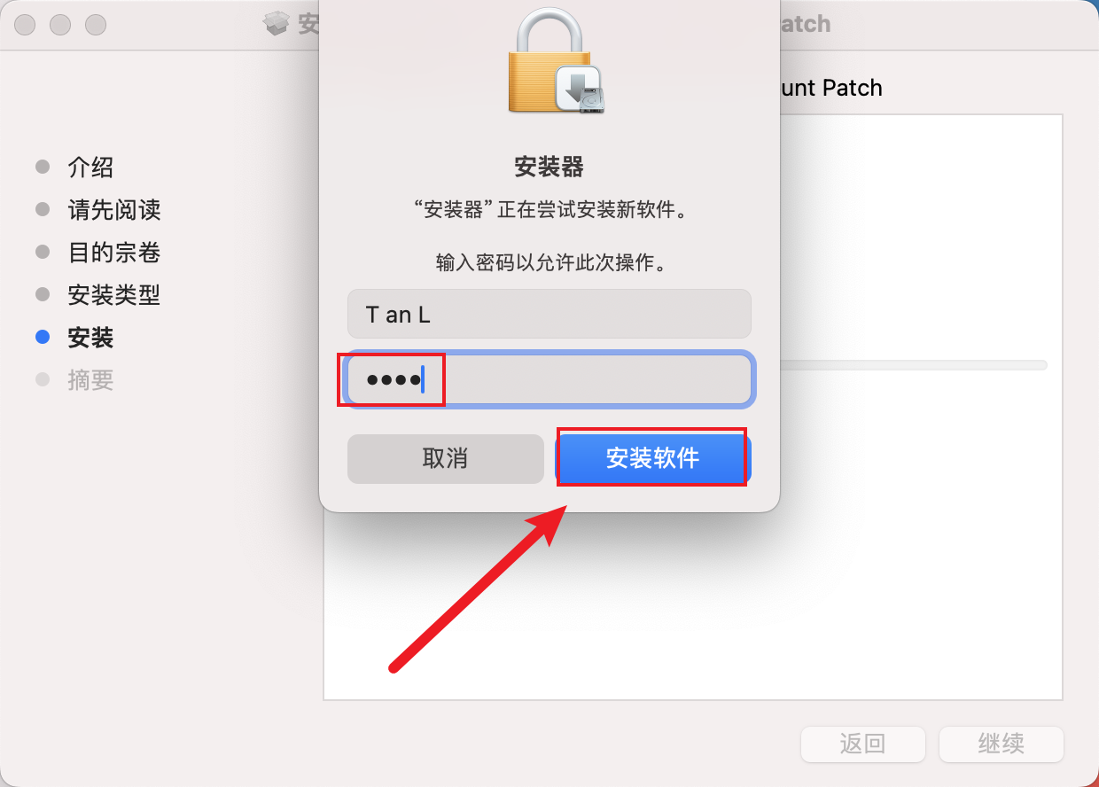 输入开机密码后,点击【安装软件】。