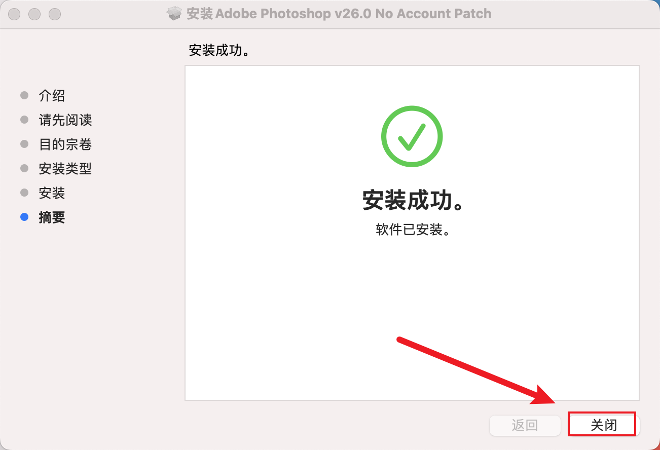 安装完成后,点击【关闭】。
