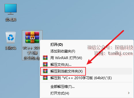 解压下载后的软件包。右键软件包,点击【解压到当前文件夹】(win11系统需先点击【显示更多选项】)。 (未安装解压软件可以点击此处查看:如何安装解压软件?)
