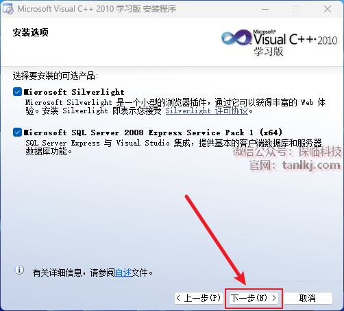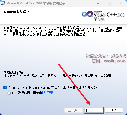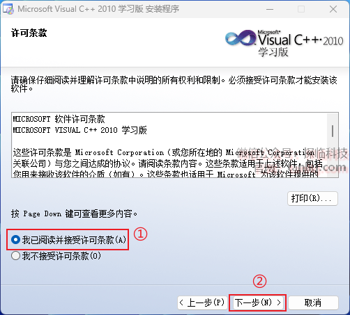 ①勾选【我已阅读并接受许可条款】;