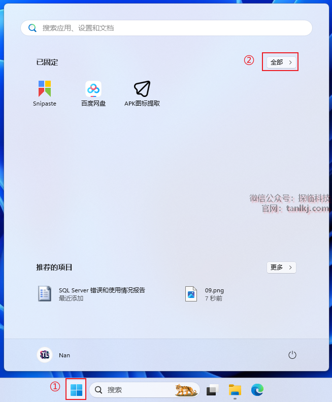 ①点击【开始】图标;