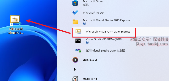 找到软件【Microsoft Visual C++ 2010 Express】,并将其拖至桌面创建快捷方式。