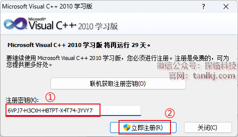 ①输入注册密钥:6VPJ7-H3CXH-HBTPT-X4T74-3YVY7