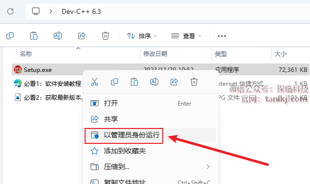 打开解压后的文件夹,右键程序【Setup】,点击【以管理员身份运行】。