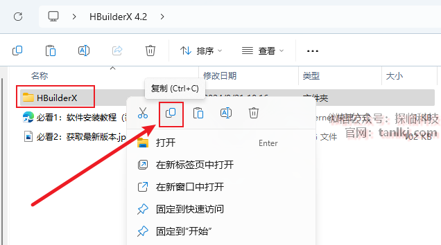 打开解压后的文件夹,复制文件【HBuilderX】。