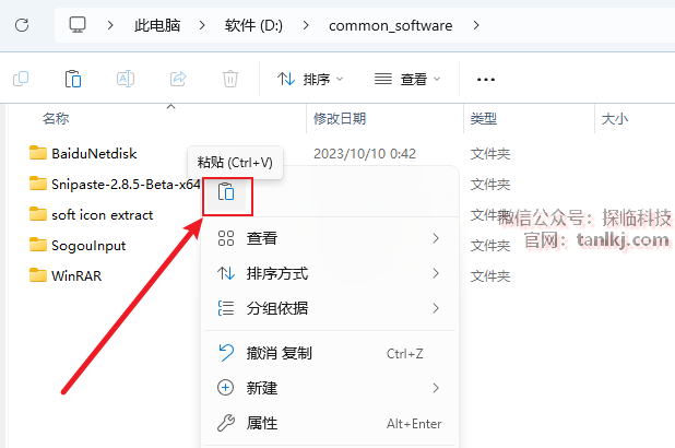打开软件需要安装的位置,粘贴刚刚复制的文件。