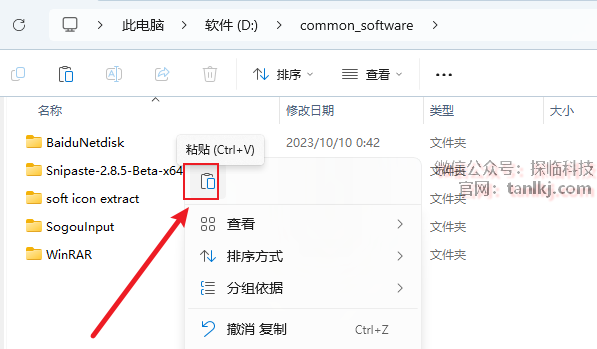 打开软件需要安装的位置,粘贴刚刚复制的文件。