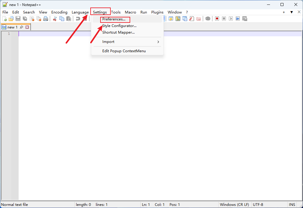 点击菜单栏中的【Settings】,点击【Preferences…】。