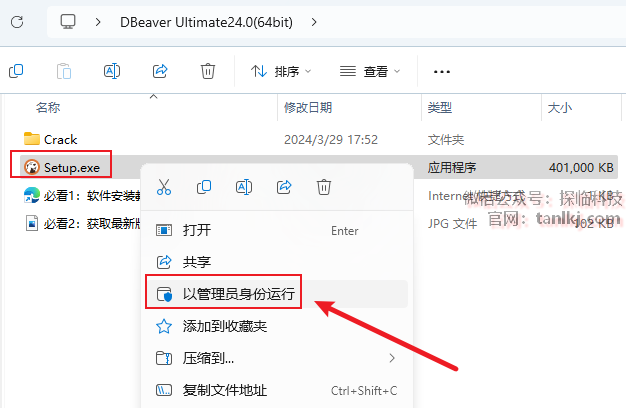 打开解压后的文件夹,右键程序【Setup】,点击【以管理员身份运行】。