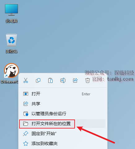 在桌面,右键软件【DBeaverUltimate】,点击【打开文件所在的位置】。