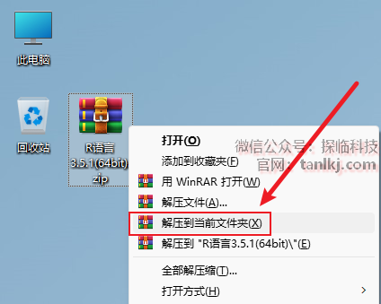 解压下载后的软件包。右键软件包,点击【解压到当前文件夹】(win11系统需先点击【显示更多选项】)。 (未安装解压软件可以点击此处查看:如何安装解压软件?)