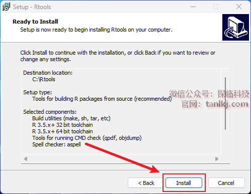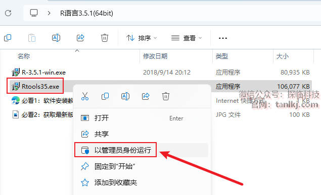 打开之前解压后的文件夹,右键程序【Rtools35】,点击【以管理员身份运行】。