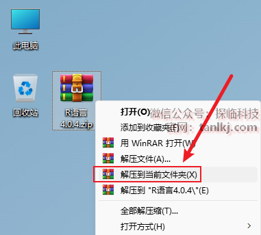 解压下载后的软件包。右键软件包,点击【解压到当前文件夹】(win11系统需先点击【显示更多选项】)。 (未安装解压软件可以点击此处查看:如何安装解压软件?)