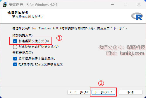 ①勾选【创建桌面快捷方式】;