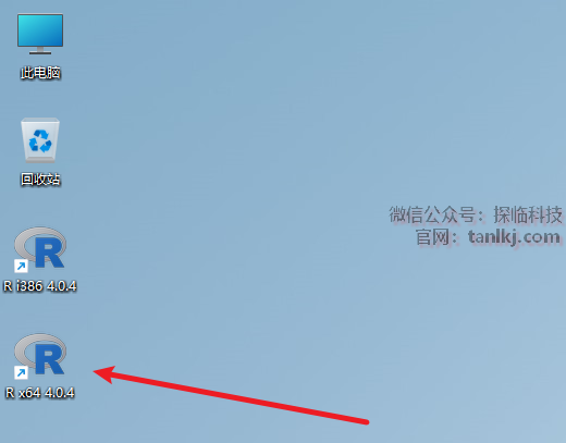 在桌面,双击运行软件【R x64 4.0.4】。