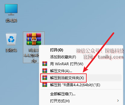 解压下载后的软件包。右键软件包,点击【解压到当前文件夹】(win11系统需先点击【显示更多选项】)。 (未安装解压软件可以点击此处查看:如何安装解压软件?)