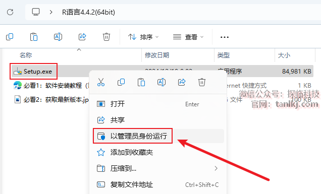 打开解压后的文件夹,右键程序【Setup】,点击【以管理员身份运行】。