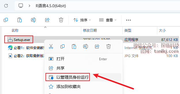 打开解压后的文件夹,右键程序【Setup】,点击【以管理员身份运行】。