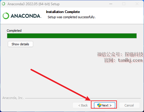 安装完成后,点击【Next】。
