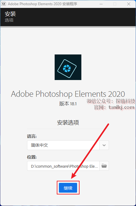 更改软件默认的安装位置,如不需更改,直接点击【继续】即可。