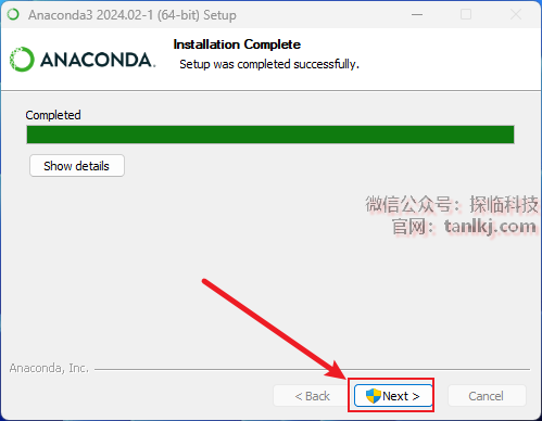 安装完成后,点击【Next】。