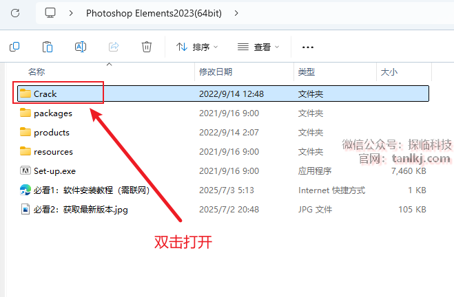 打开之前解压后的文件夹,双击打开文件夹【Crack】。