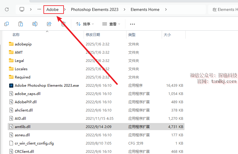在【步骤08】中打开的文件夹内,点击上方地址栏中的【Adobe】。