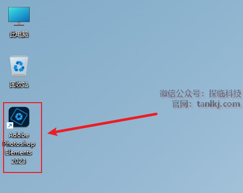 在桌面,双击运行软件【Adobe Photoshop Elements 2023】。