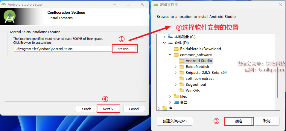 ②选择软件安装的位置,安装路径中不能包含任何中文字符;
