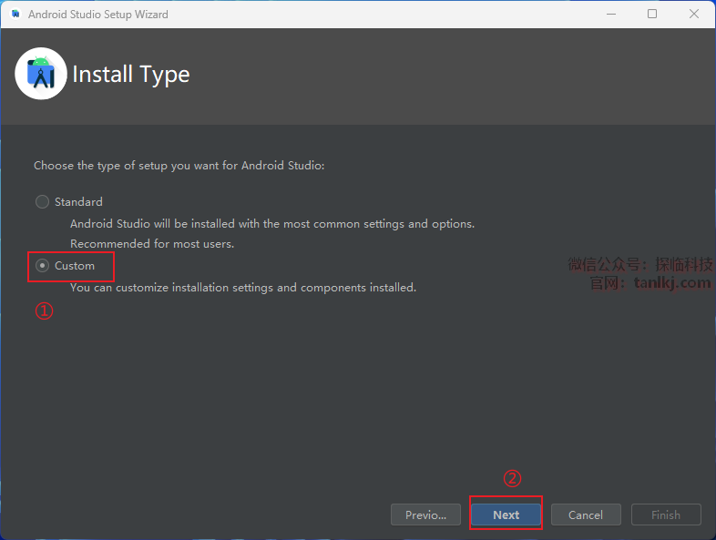 ①勾选【Custom】;