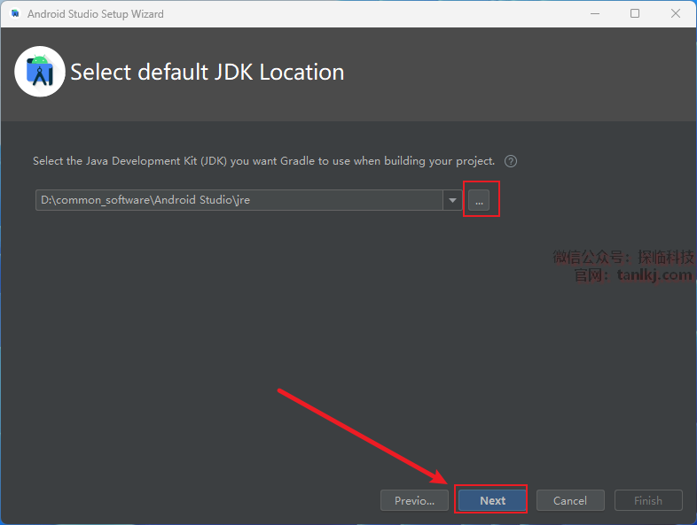 点击【…】可更改JDK路径,点击【Next】。