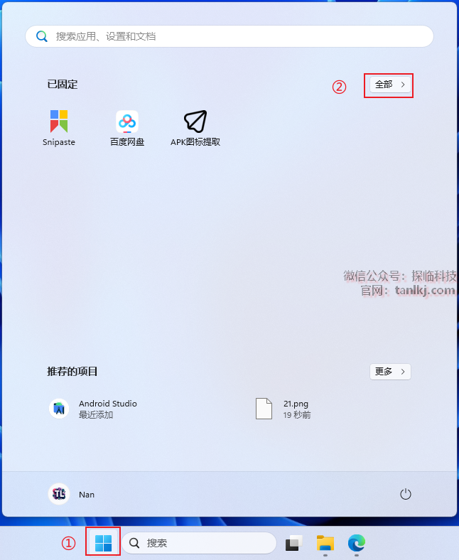 ①点击【开始】图标;