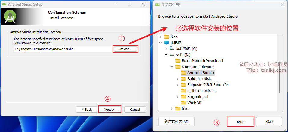 ②选择软件安装的位置,安装路径中不能包含任何中文字符;
