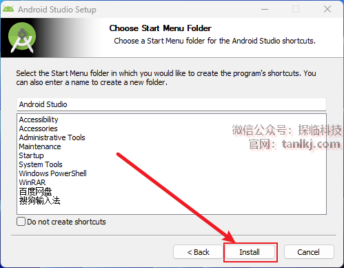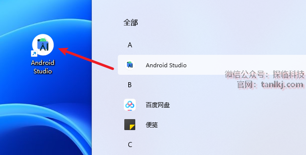 找到软件【Android Studio】,并将其拖至桌面创建快捷方式。