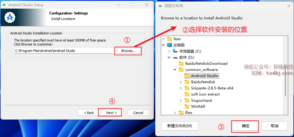 ②选择软件安装的位置,安装路径中不能包含任何中文字符;