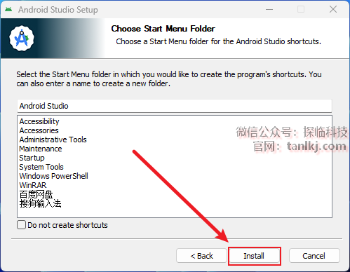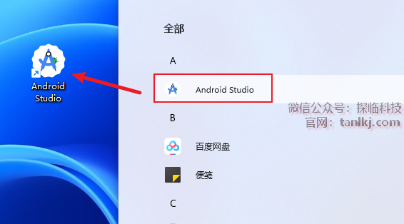 找到软件【Android Studio】,并将其拖至桌面创建快捷方式。