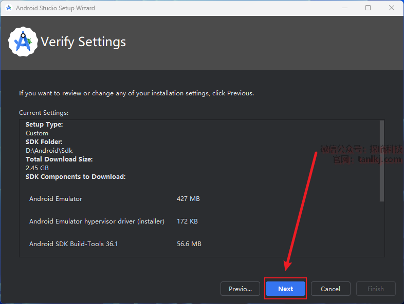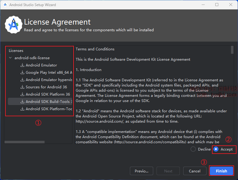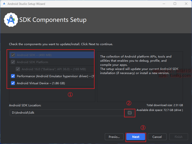 ②点击【文件夹】图标可以更改Android SDK Location位置;